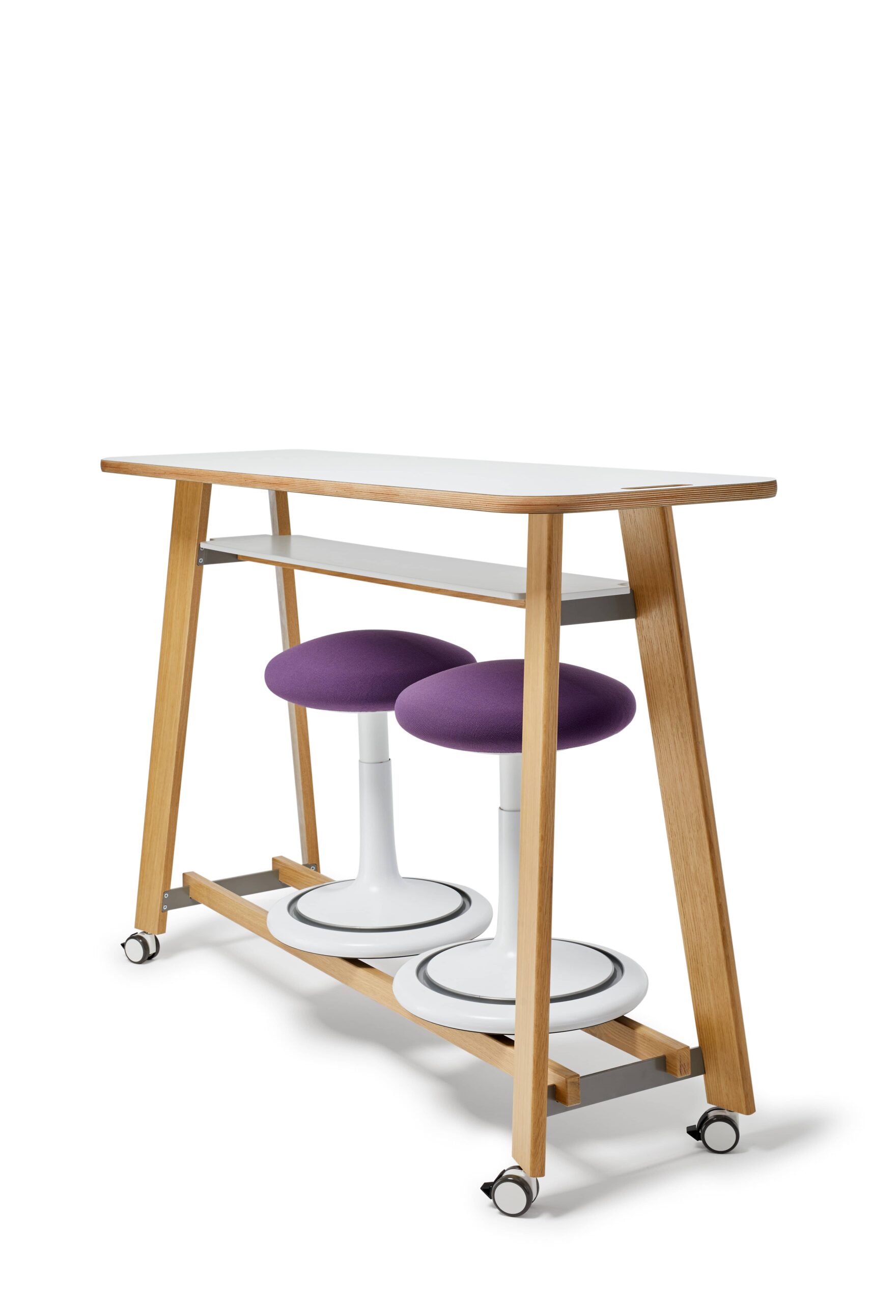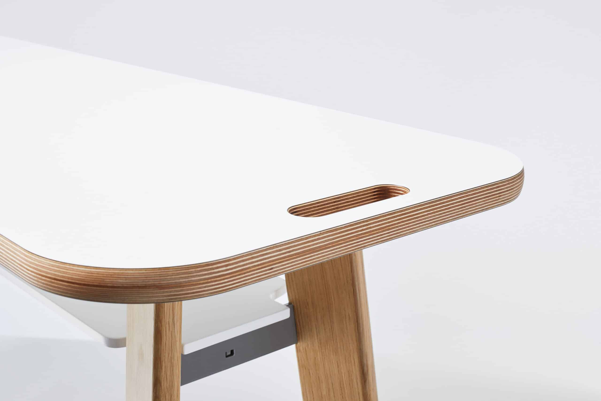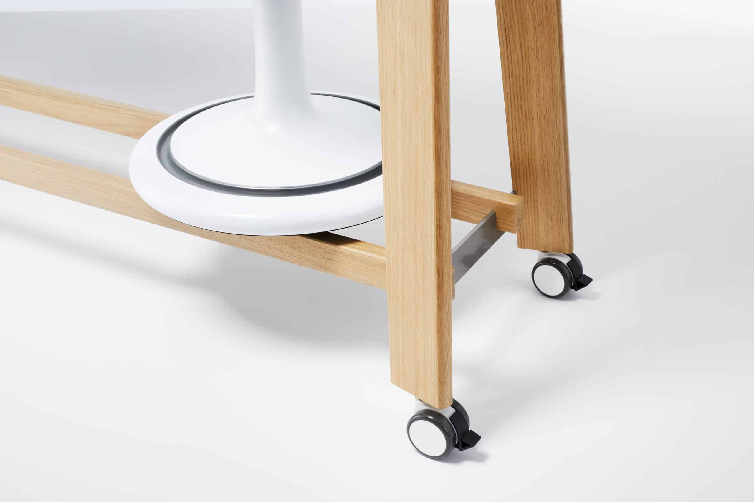 Mødebord som passer til Ongo Free og Ongo Classic. Med hjul under og et håndgreb er den nem at flytte rundt. Bordet er i solidt eg træ i hvid bordplade.